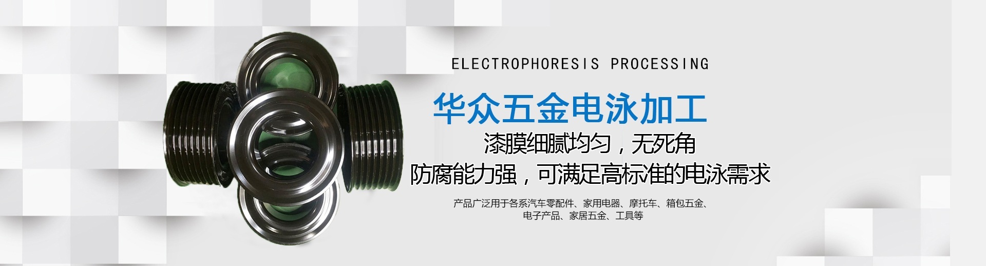 About us龍巖市華眾機械有限公司成立于2010年12月,新廠位于福建省龍巖市新羅區東寶工業集中區,注冊資本3000萬元,占地27000平方米,員工60多人,是一家專業從事電泳、磷化、數車等加工業務的制造型企業,是國家高新技術企業,擁有三十多項實用新型專利。 我司的電泳技術和品質在華南地區深受客戶信賴。公司擁有20年以上經驗豐富的技術人員和管理人員,擁有全自動電泳生產設備,所采用原料均為美國、德國進口,產品品質能達到國際電泳涂裝標準要求,廣泛應用于汽車零部件、機械配件、電子產品、工藝品等一系列金屬制品?,F配套服務于比亞迪、吉利、通用、福特、大眾、豐田、現代等全球知名汽車公司。 2018年8月公司通過NSF-ISR管理評審,獲得IATF16949質量管理體系證書。